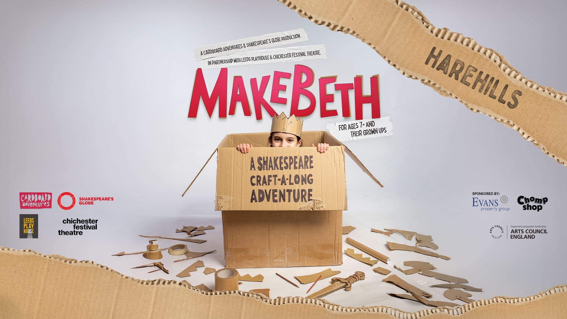 Makebeth is coming to Harehills! A playful, interactive, craft-along cardboard retelling of Shakespeare’s Macbeth for families and young audiences aged 7-11.